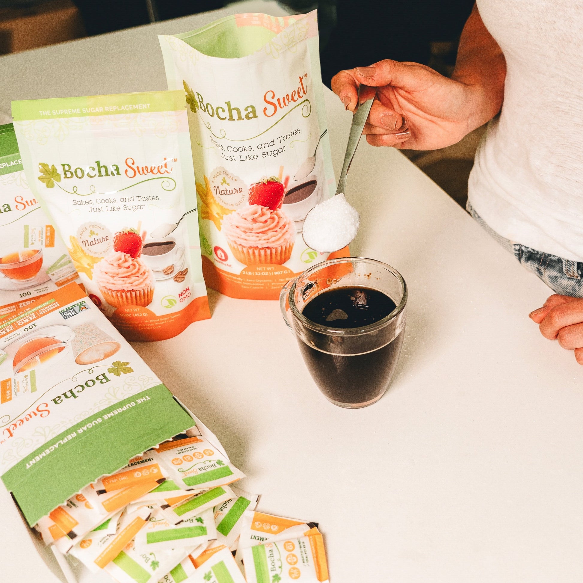 Enjoy your favorite coffee without the sugar rush! BochaSweet on-the-go granular sweetener packets are the perfect zero-calorie, zero-glycemic sweetener that tastes just like sugar. Simply ask your barista to skip the sugar, and add BochaSweet for a guilt-free, deliciously sweet drink. Your body will thank you. Grab your BochaSweet packets today for a healthier, no-sugar alternative wherever you go!